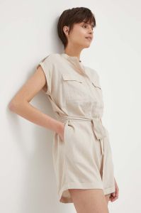 Лляний комбінезон Pepe Jeans Alina колір бежевий овальне декольте