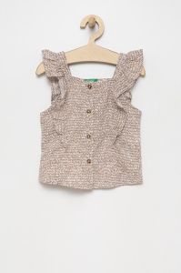 Льняна блузка United Colors of Benetton колір бежевий візерунок