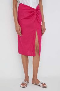Льняна спідниця Answear Lab колір рожевий midi пряма