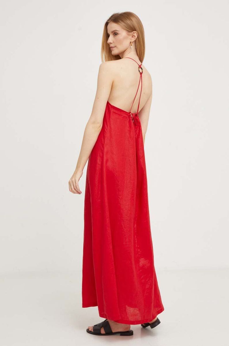 Льняна сукня Answear Lab колір червоний maxi пряма