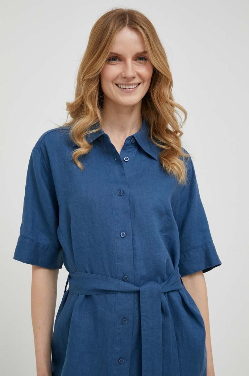 Льняна сукня United Colors of Benetton колір синій midi пряма
