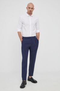 Льняні штани Emporio Armani чоловічі колір синій пряме