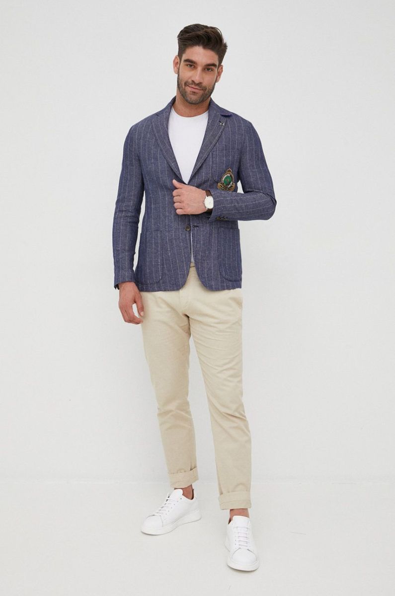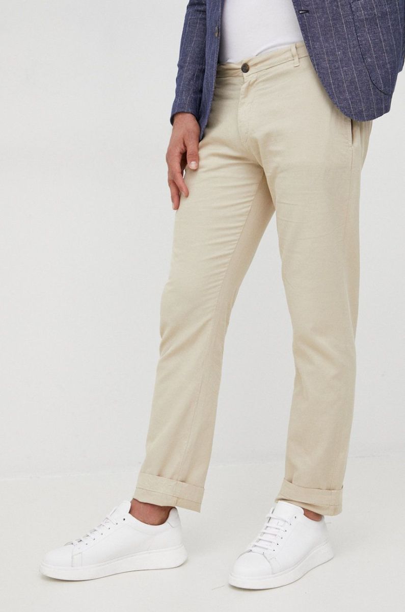 Льняні штани La Martina чоловічі колір бежевий пряме