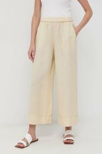 Льняні штани Max Mara Leisure колір бежевий широке висока посадка