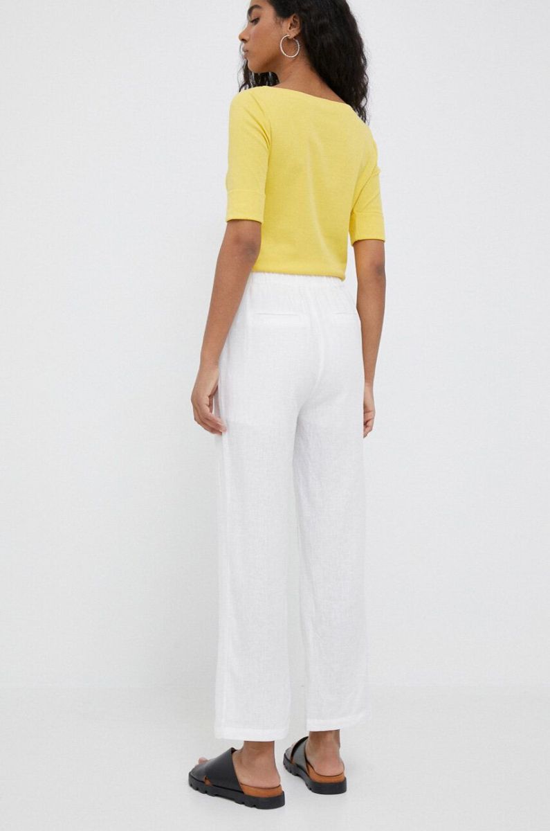 Льняні штани Pepe Jeans колір білий пряме висока посадка