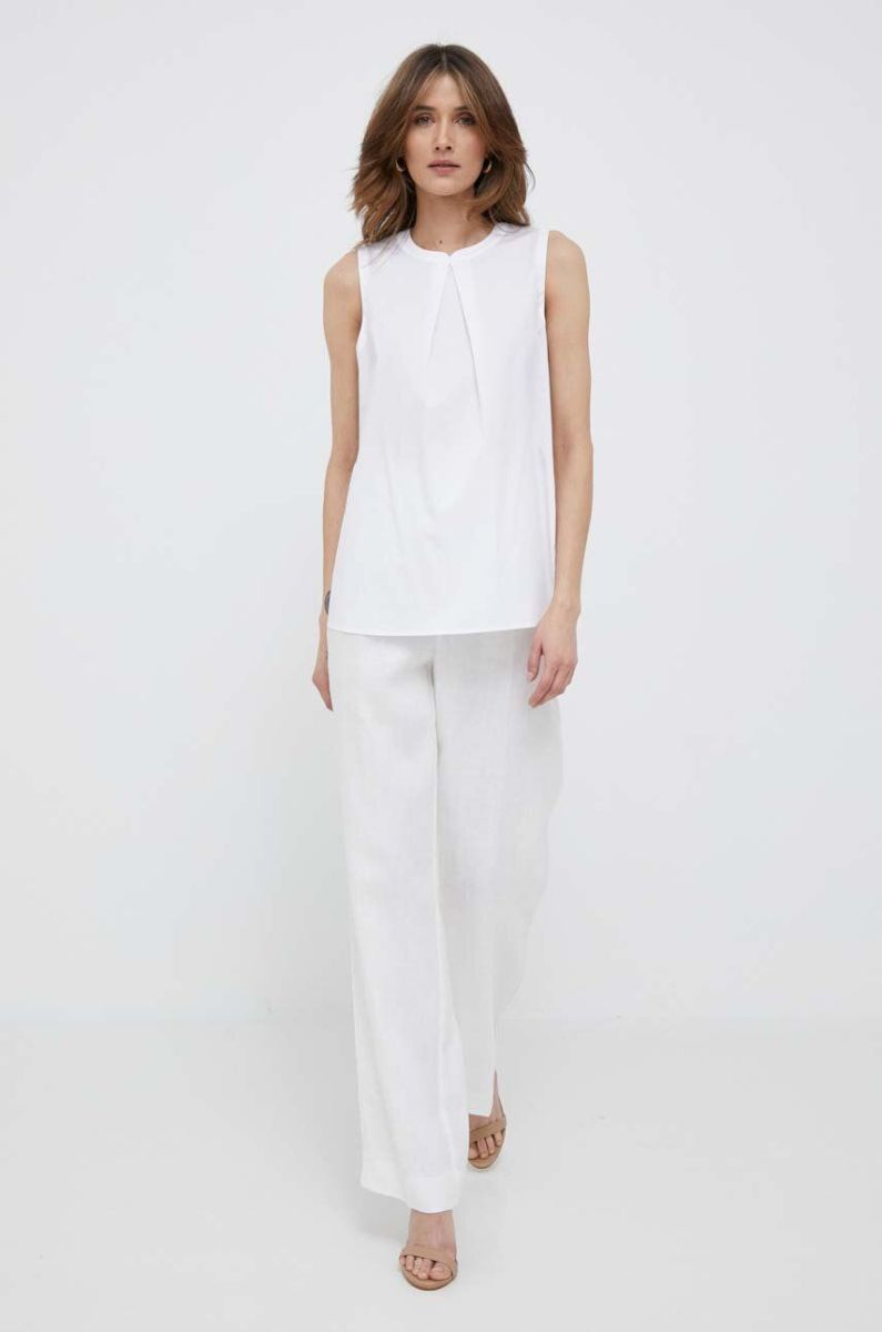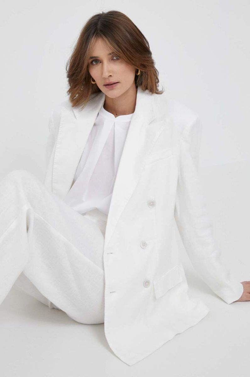 Льняні штани Polo Ralph Lauren колір білий пряме висока посадка