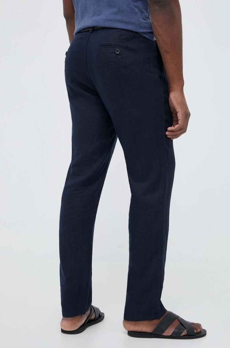 Льняні штани Sisley колір синій пряме