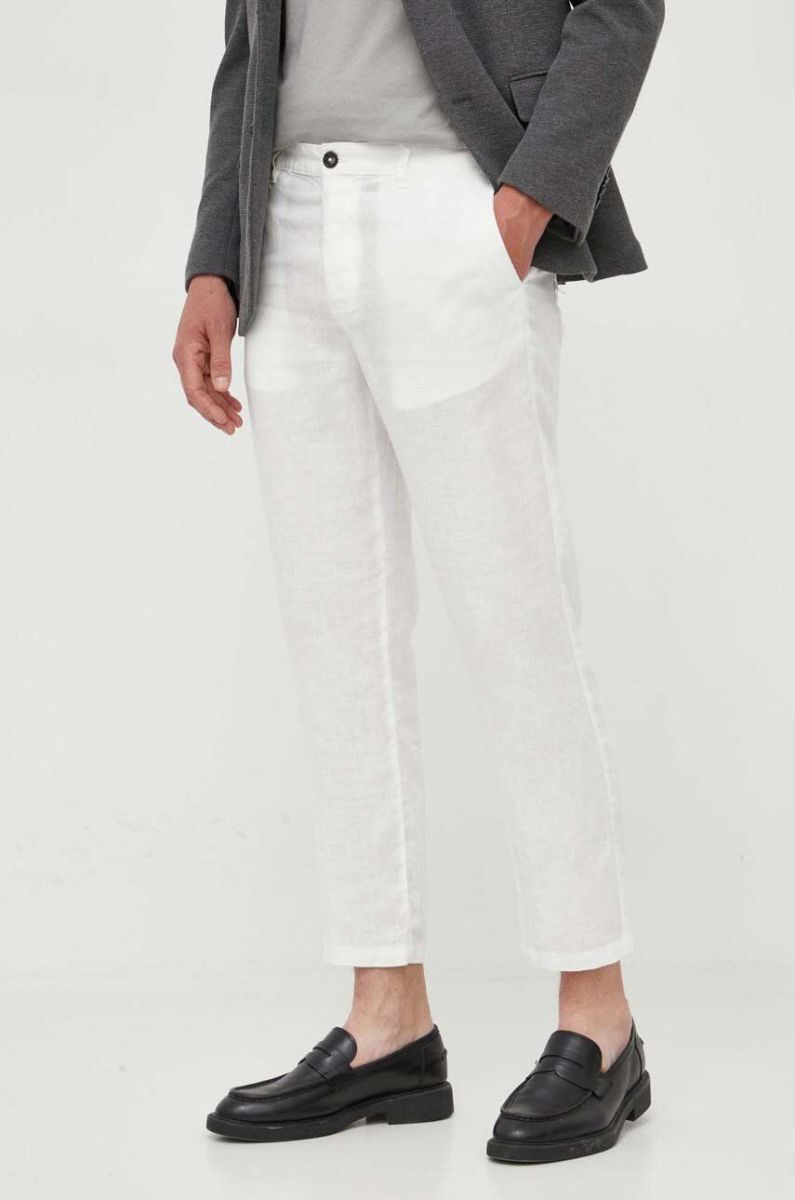 Льняні штани United Colors of Benetton колір білий пряме