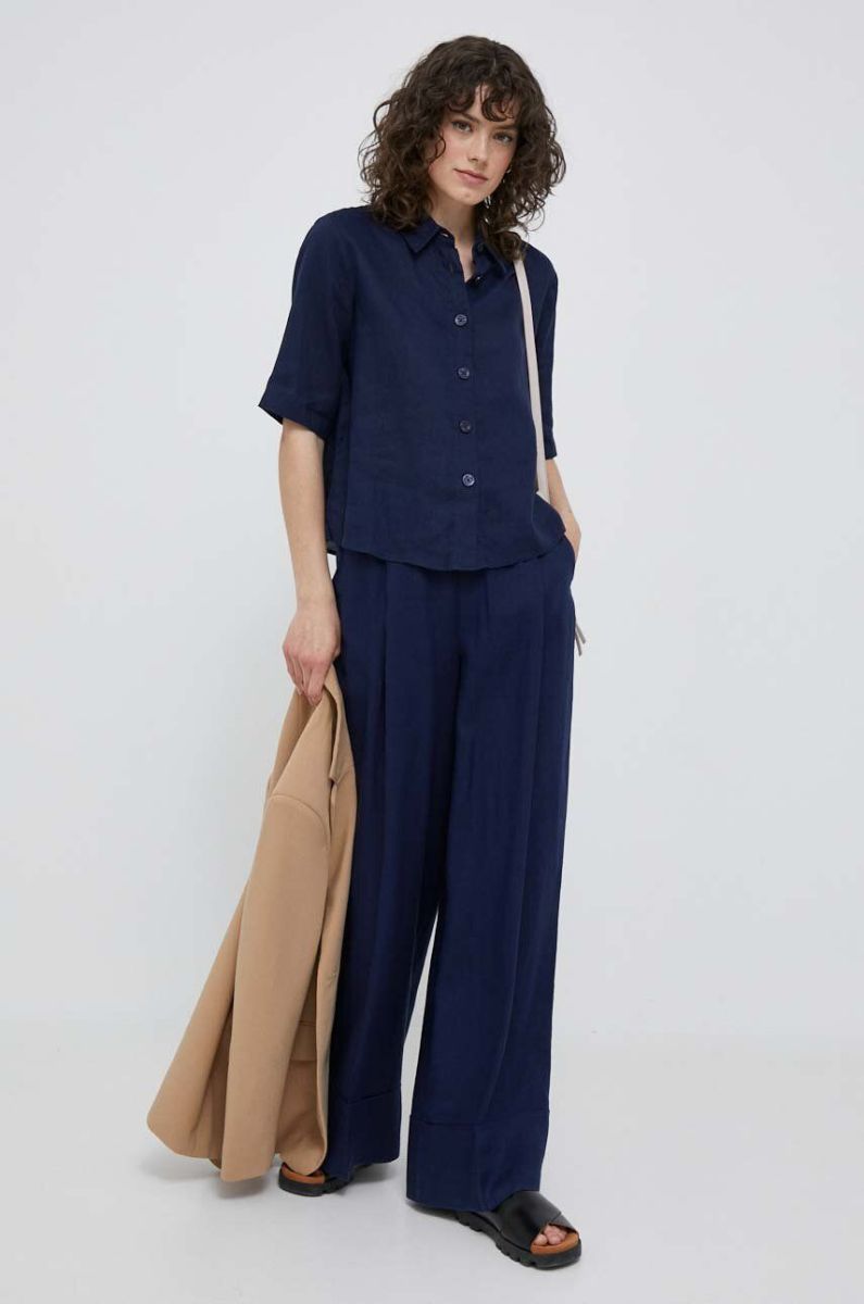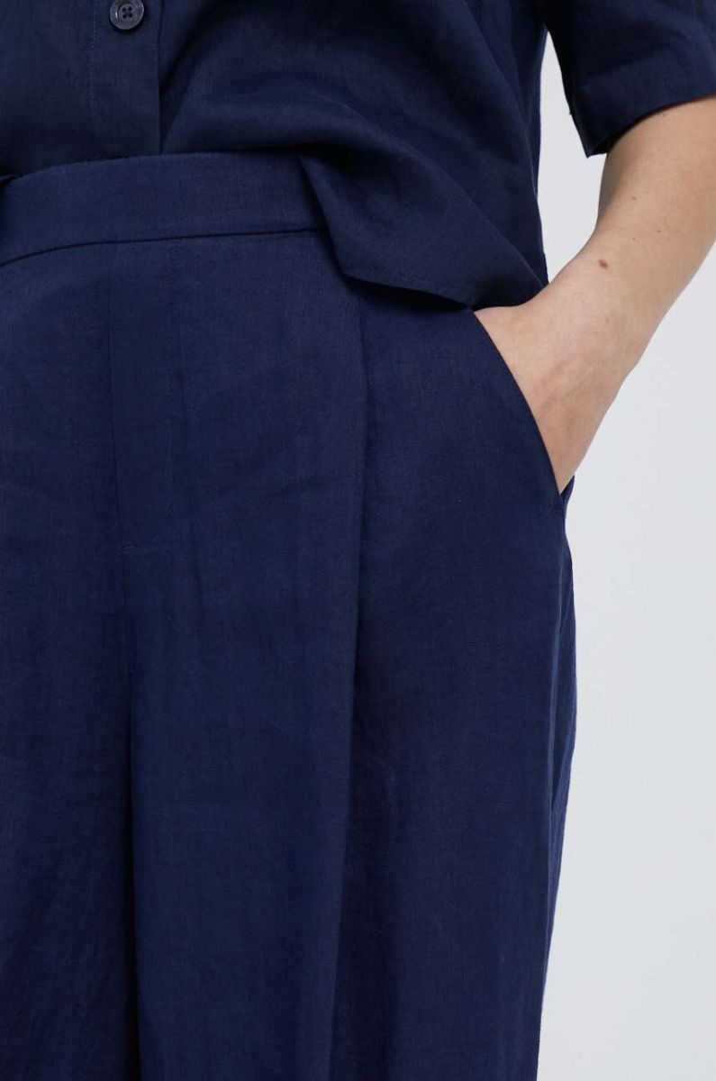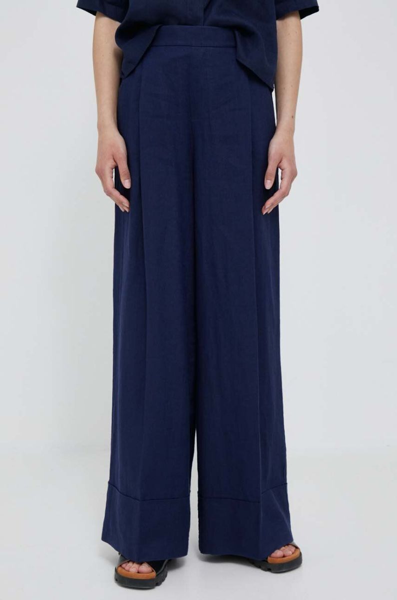 Льняні штани United Colors of Benetton колір синій широке висока посадка