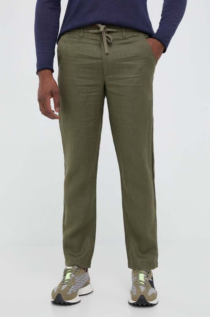 Льняні штани United Colors of Benetton колір зелений фасон chinos