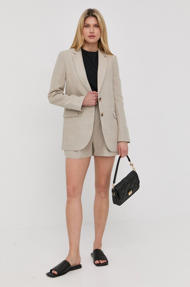Льняний жакет MICHAEL Michael Kors колір бежевий однобортний однотонний
