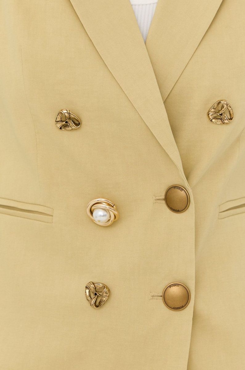 Льняний жакет Pinko колір зелений двобортний однотонна