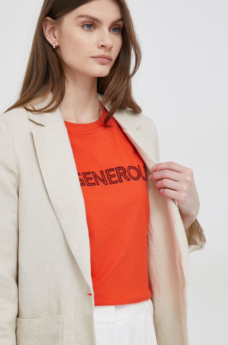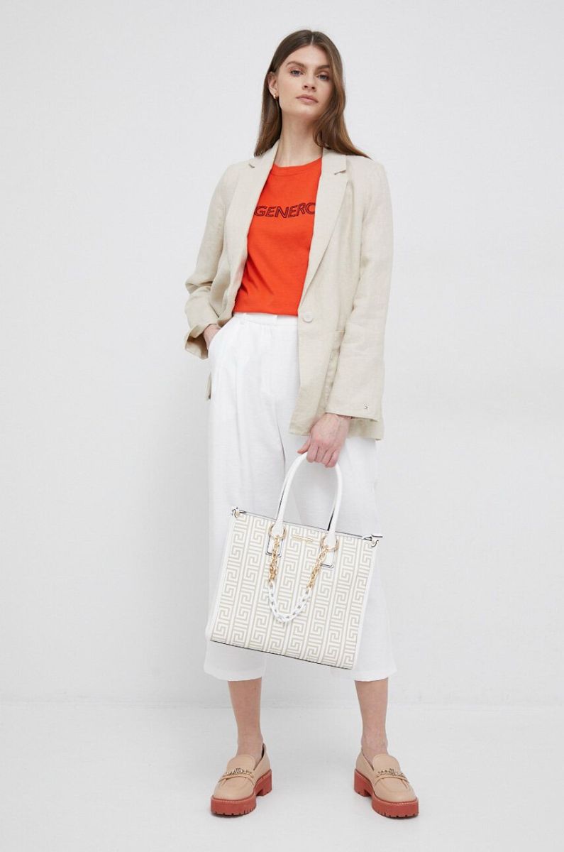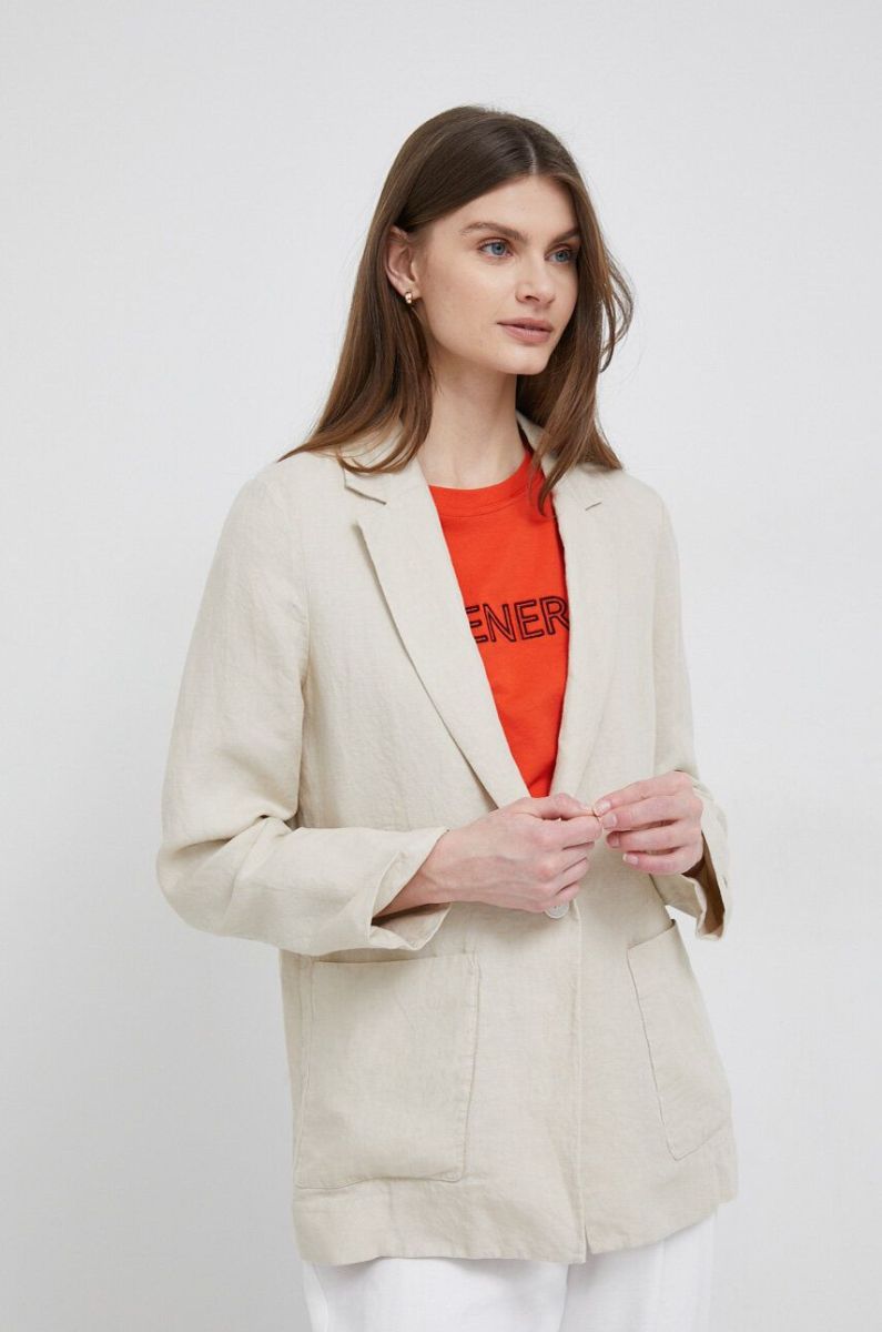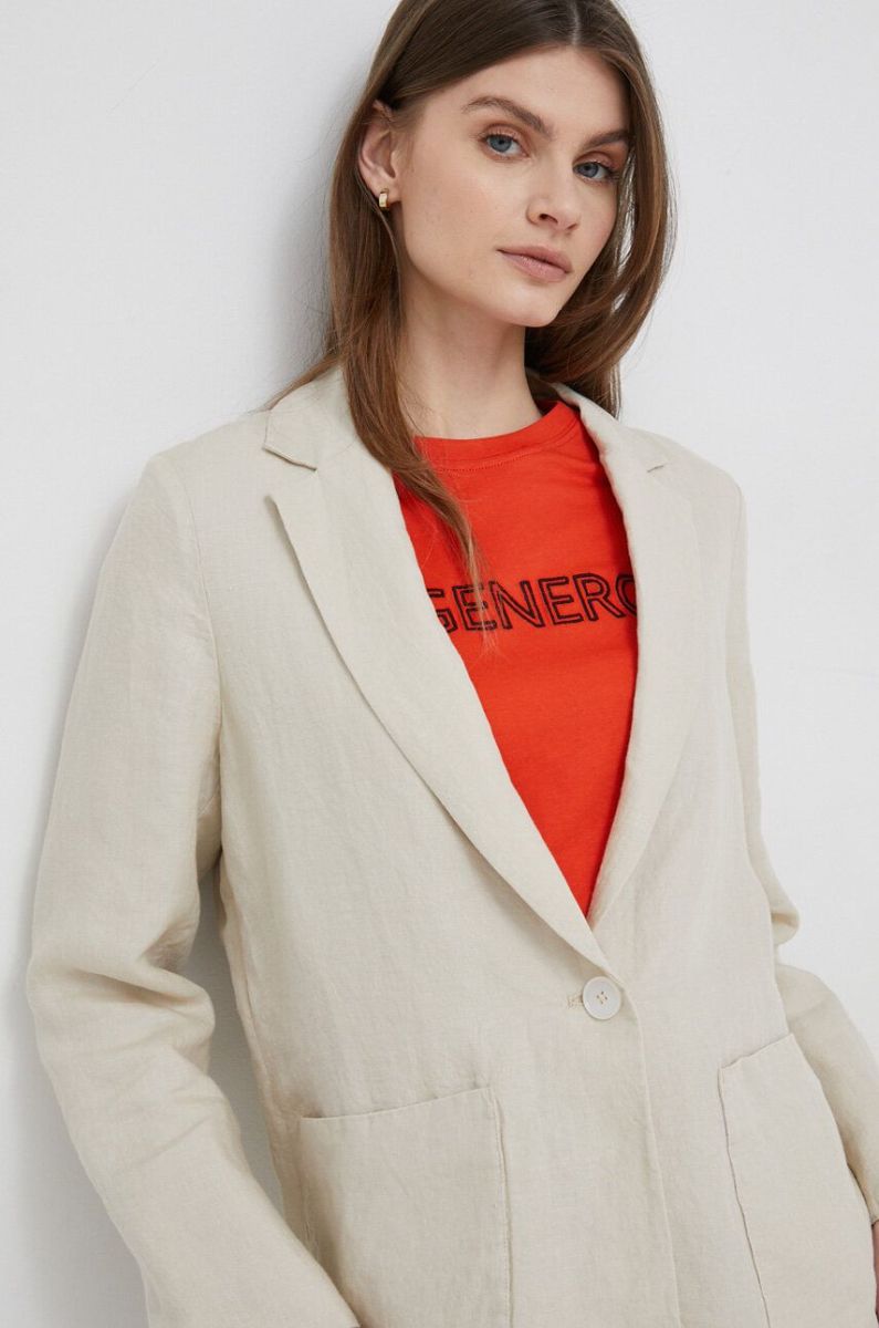 Льняний жакет Tommy Hilfiger колір бежевий однобортний однотонна