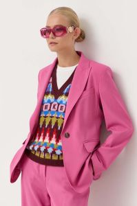 Льняний жакет Weekend Max Mara колір рожевий однобортний однотонна