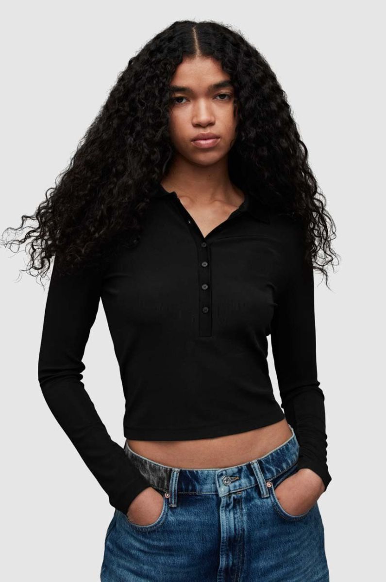 Лонгслів AllSaints HALLIE жіночий колір чорний
