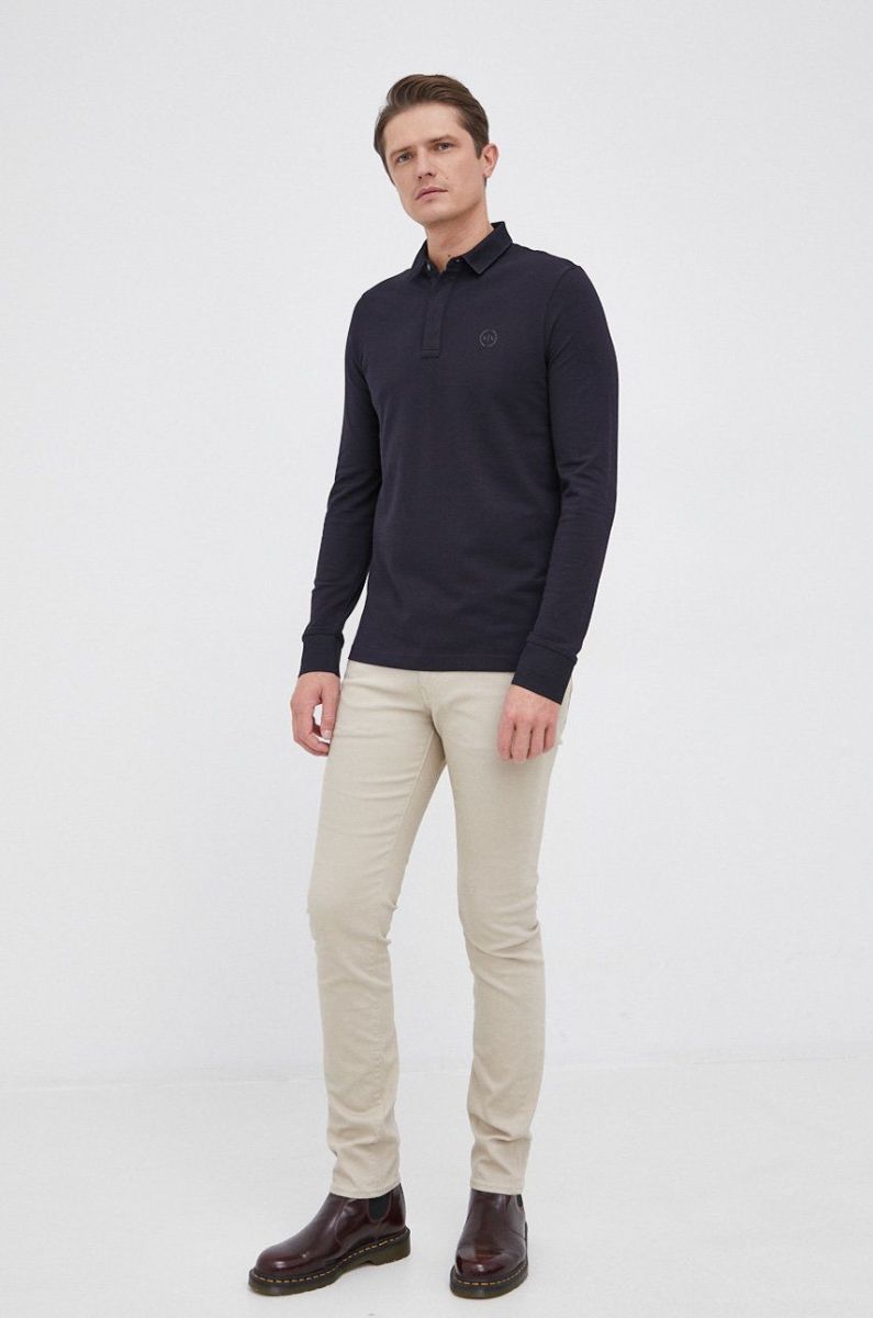 Лонгслів Armani Exchange чоловічий колір синій гладкий