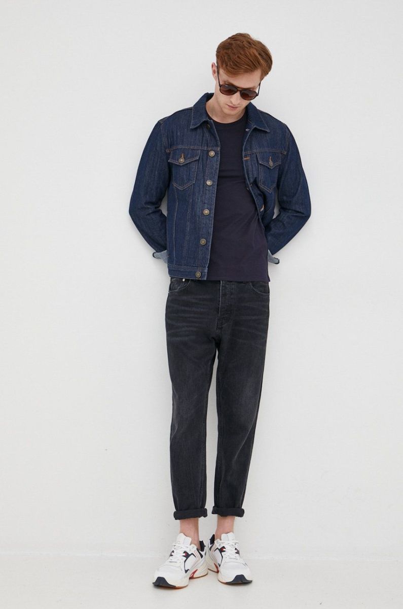 Лонгслів Guess чоловічий колір синій однотонний (2434224)