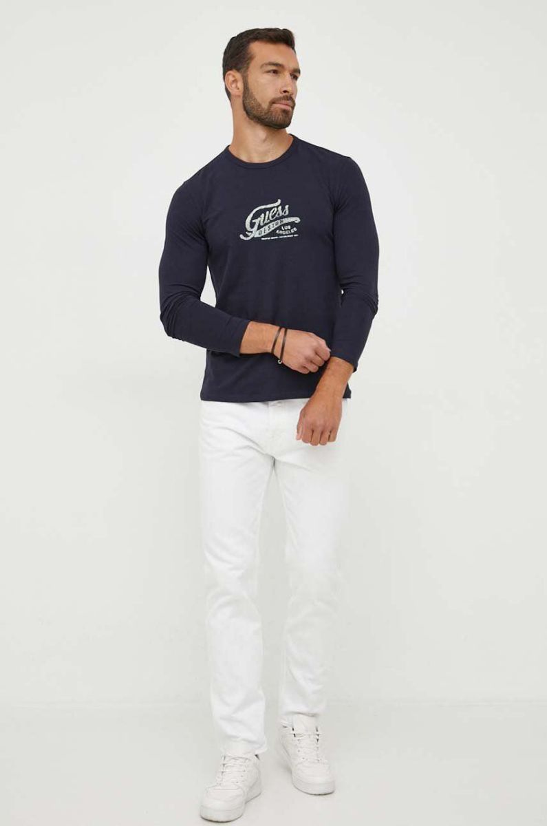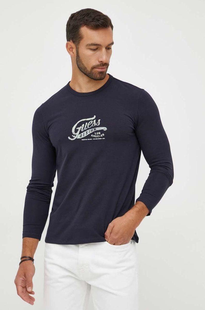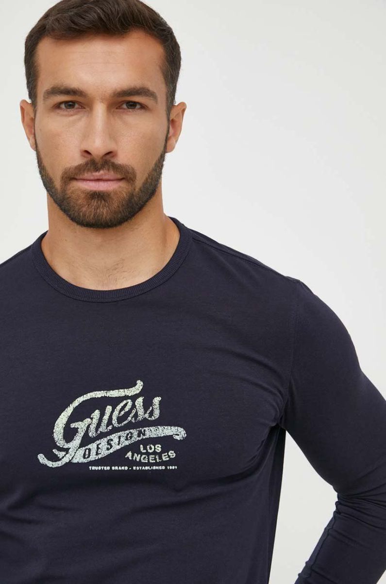 Лонгслів Guess чоловічий колір синій з принтом (3381079)