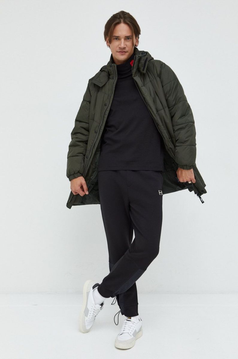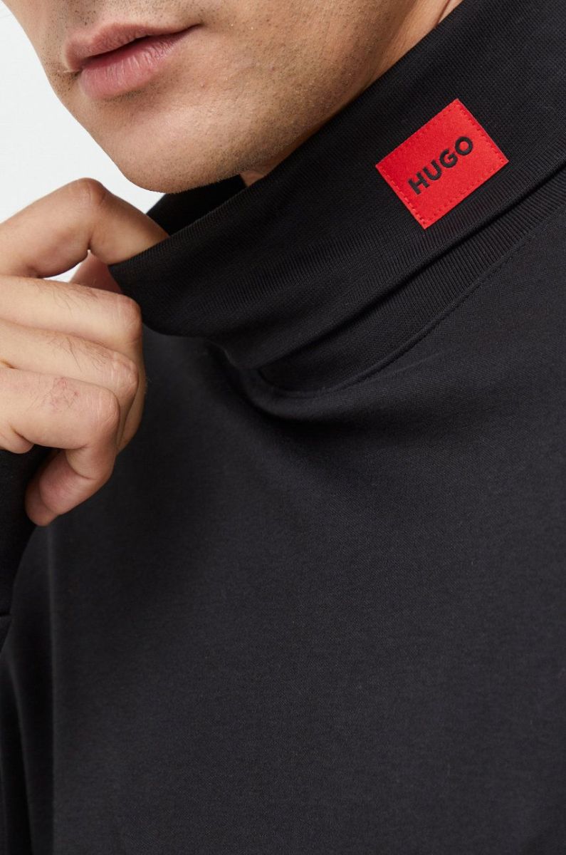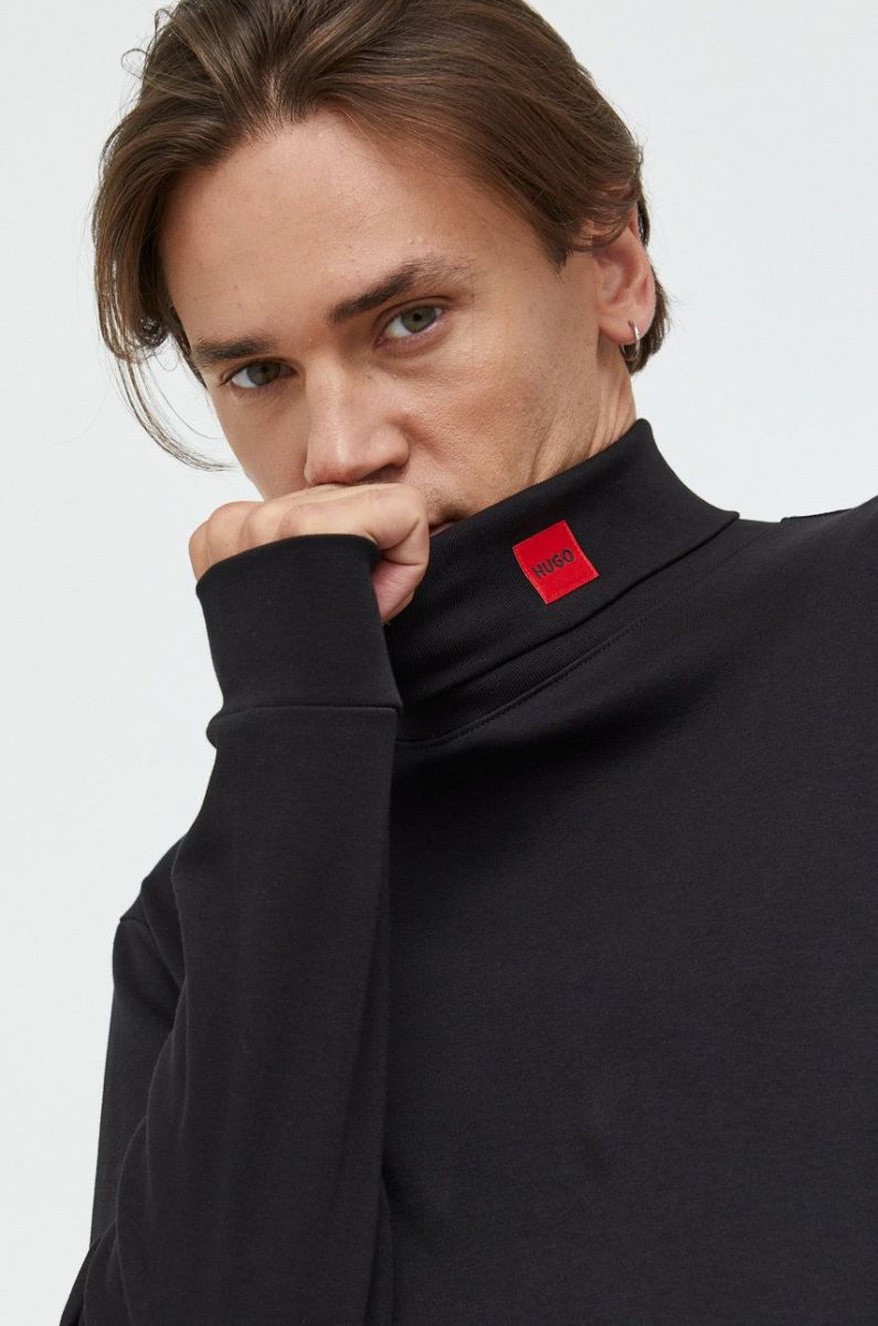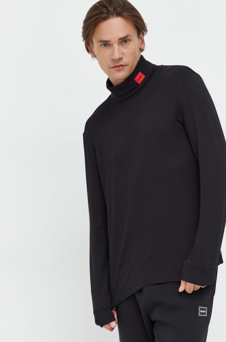 Лонгслів HUGO чоловічий колір чорний з аплікацією