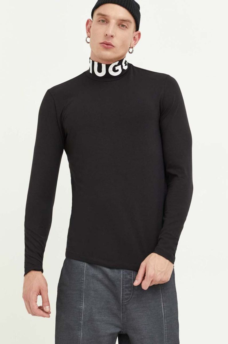 Лонгслів HUGO чоловічий колір чорний з принтом