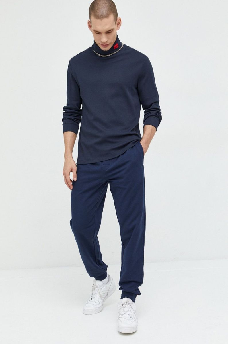 Лонгслів HUGO чоловічий колір синій з аплікацією