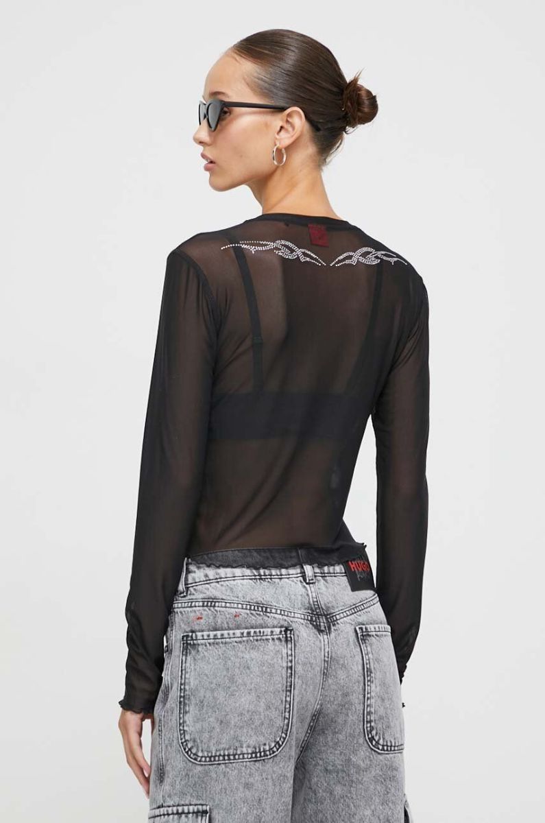Лонгслів HUGO жіночий колір чорний (3617436)