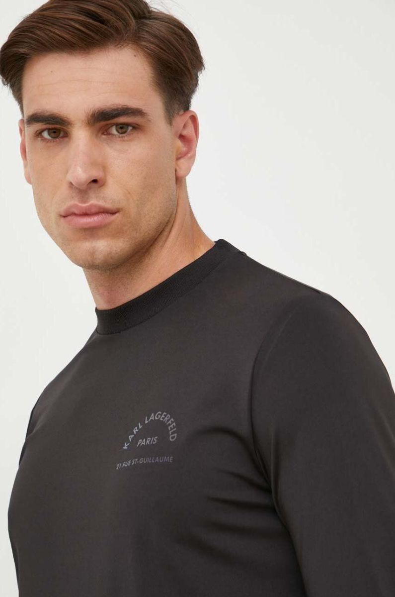 Лонгслів Karl Lagerfeld чоловічий колір чорний з принтом (3423979)