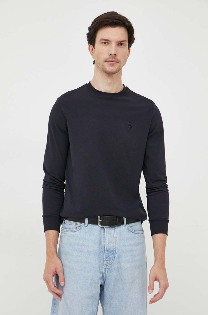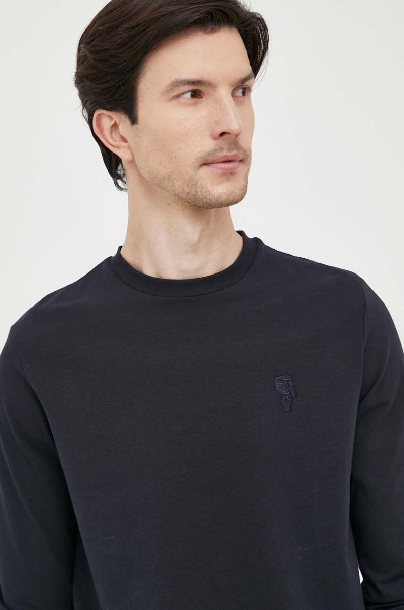Лонгслів Karl Lagerfeld чоловічий колір синій однотонний