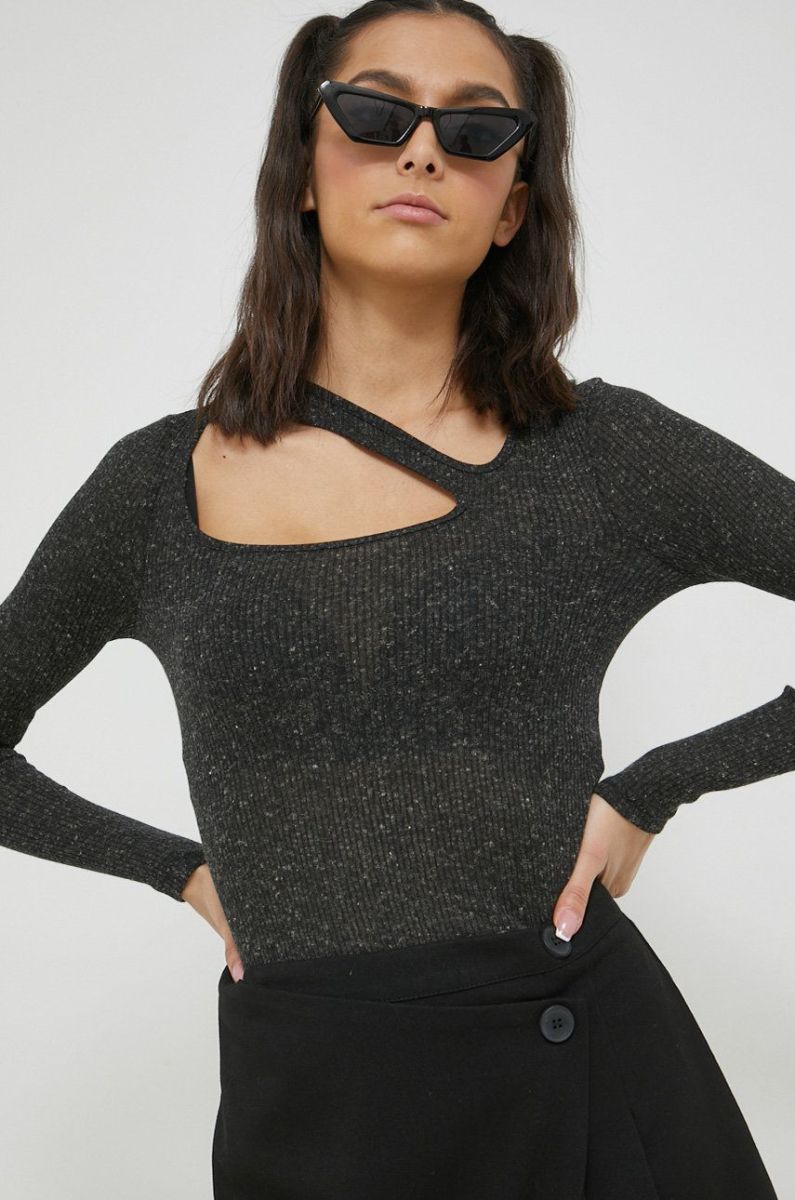 Лонгслів Noisy May Prasi жіночий колір сірий