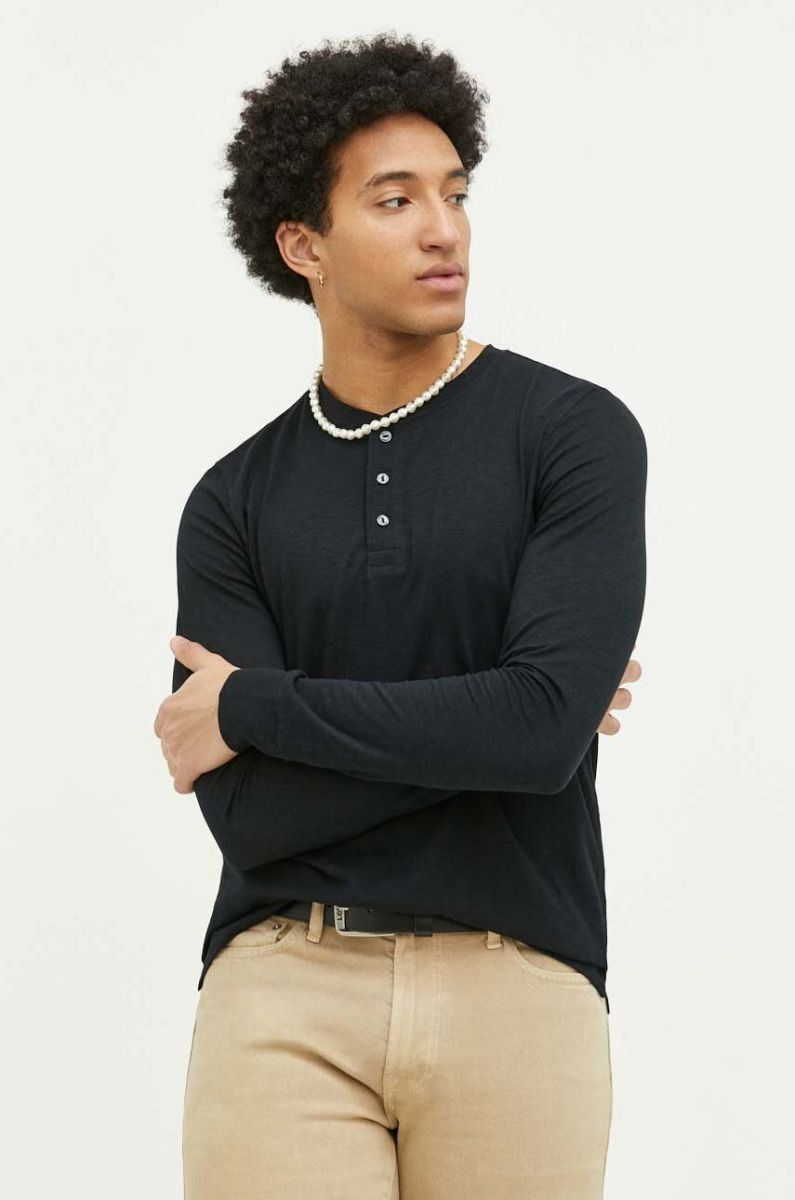 Лонгслів Superdry чоловічий колір чорний однотонний