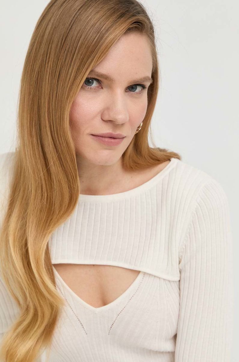 Лонгслів з домішкою шовку Guess жіночий колір бежевий легкий (2876515)