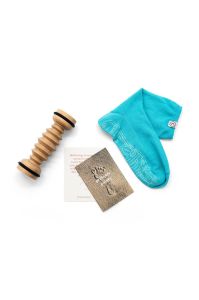 - У набір входить: дерев'яний рефлексотерапевтичний масажер, шкарпетки та інструкція.
