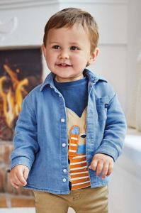 Сорочка для немовлят з колекції Mayoral. Модель виконана з деніму. Надзвичайно комфортний матеріал.