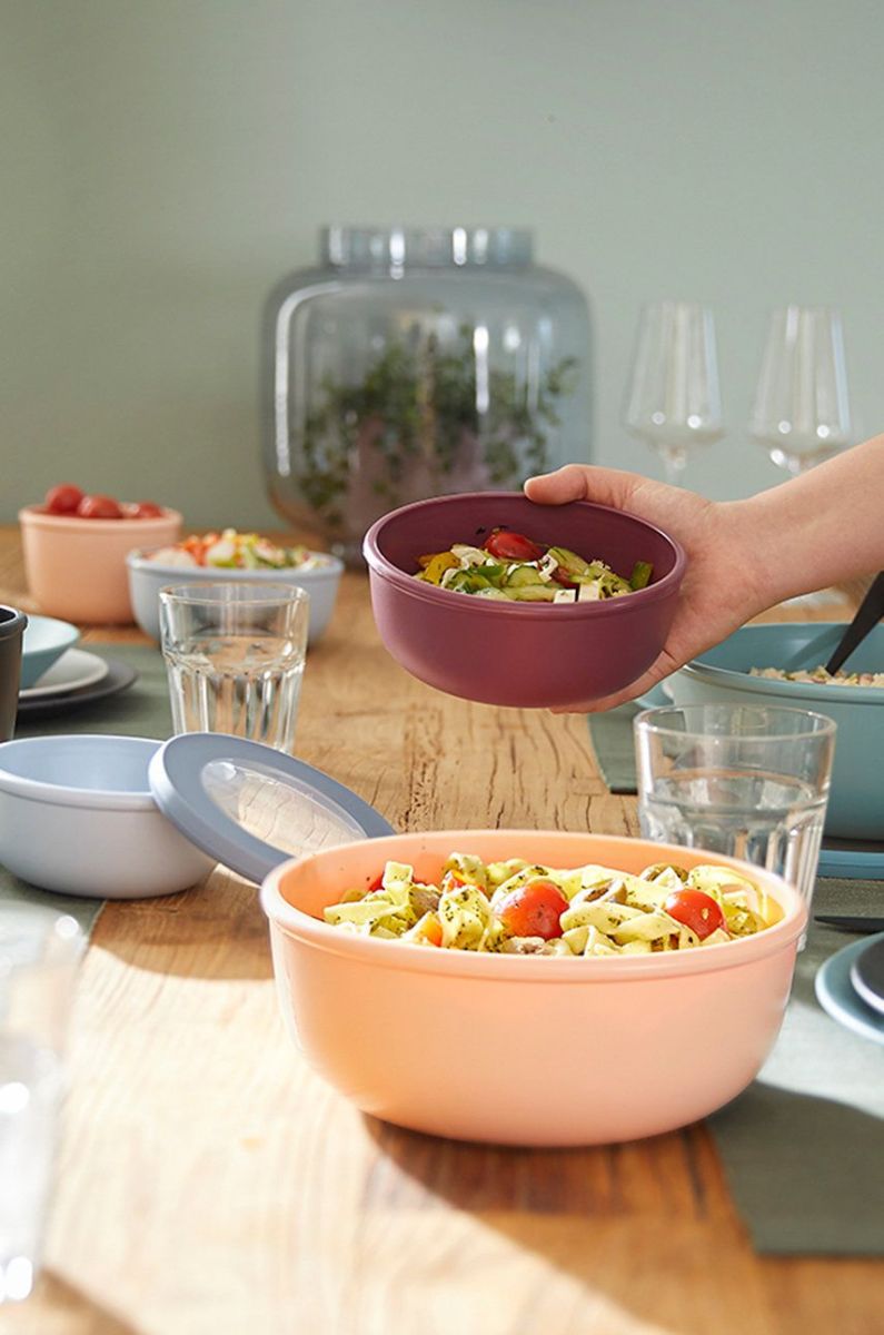 - Миска може використовуватися для приготування та подачі страв, а також, завдяки кришці, виступати в якості герметичного контейнера.