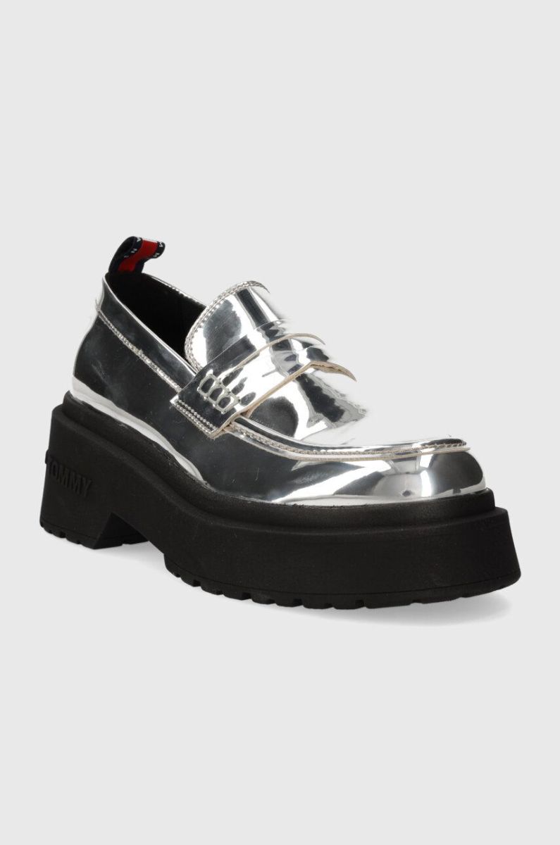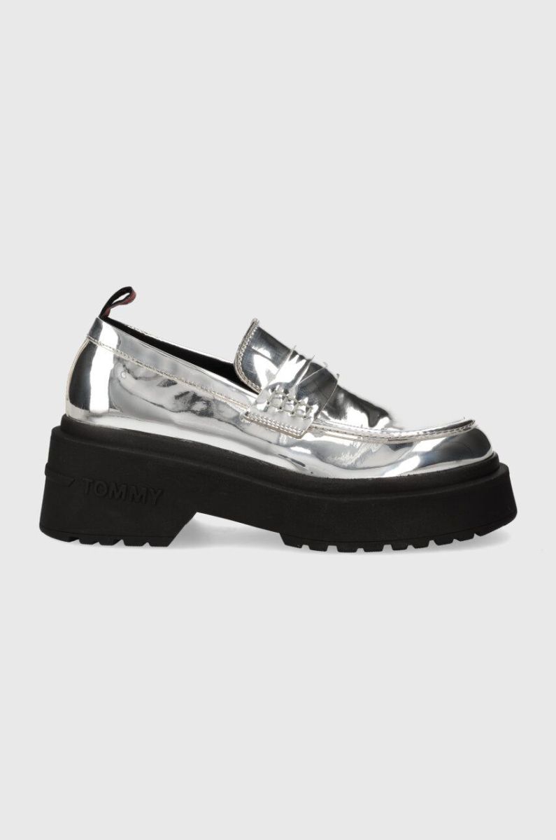 Мокасини Tommy Jeans TJW CHUNKY LOAFER METALLIC жіночі колір срібний на платформі EN0EN02321