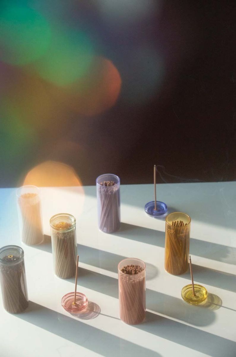 - Набір упакований в скляну банку з ручкою в кришці, що дозволяє покласти ароматичну паличку і збирати залишки їжі під час горіння.