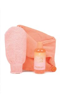 - У набір входить тюрбан, відлущувальна рукавиця та масло для ванни.