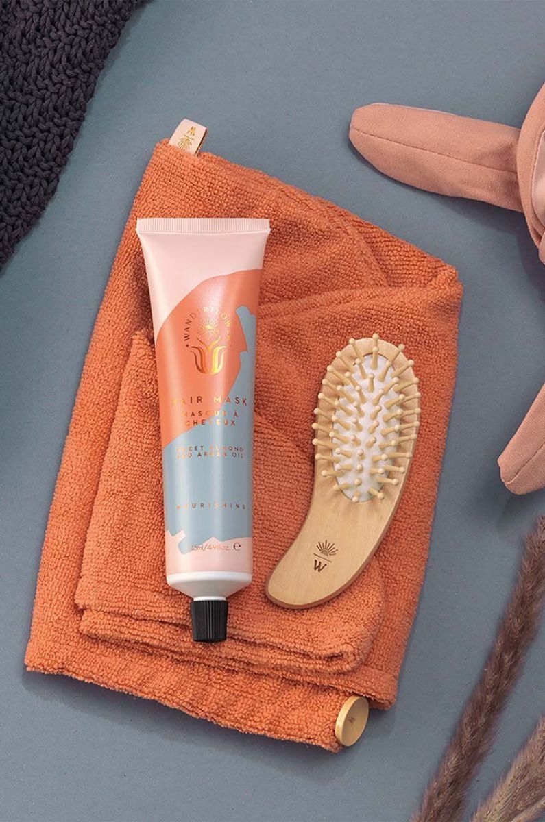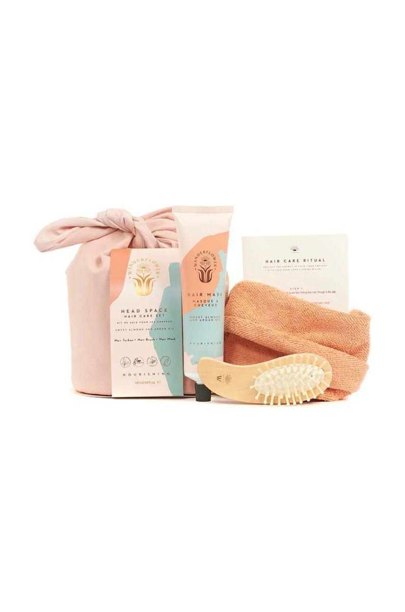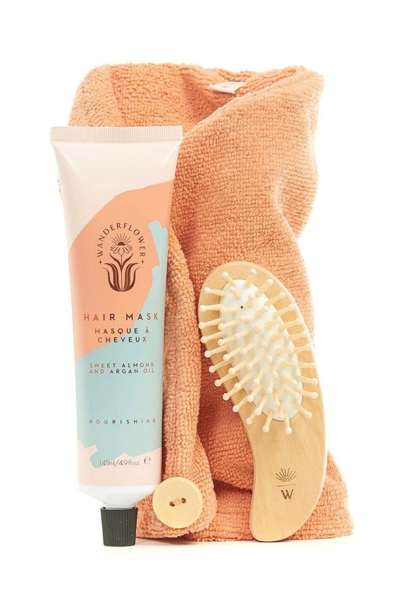 - У наборі: тюрбан для волосся, дерев'яна щітка для волосся, живильна маска та покрокова інструкція для ідеального догляду за волоссям.