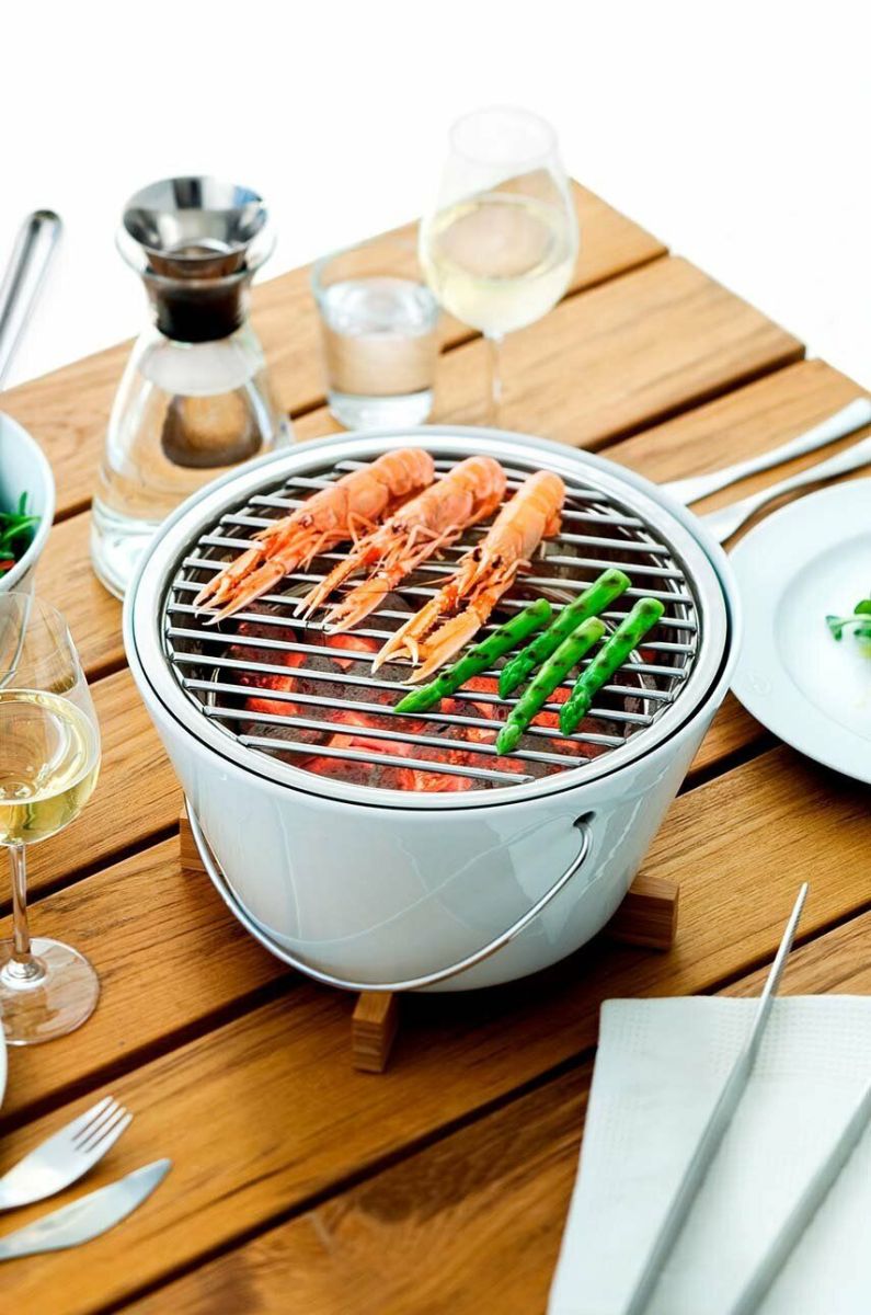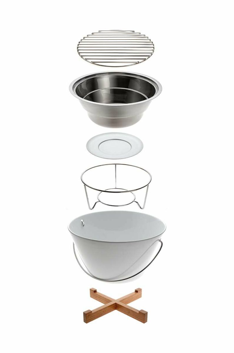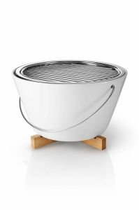 - Виріб має решітку з нержавіючої сталі, вставку, призначену для спалювання деревного вугілля, попільничку для збору падаючого попелу і дерев'яну підкладку для захисту поверхні, на яку ставиться решітка.