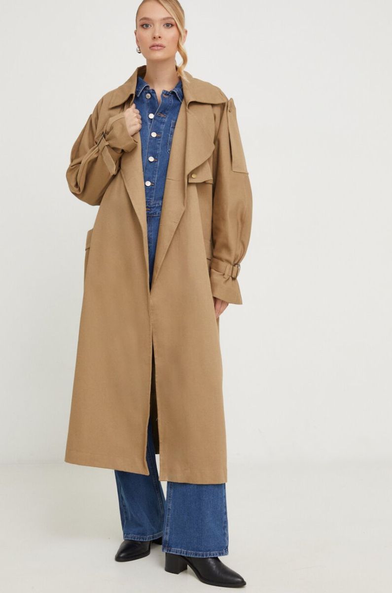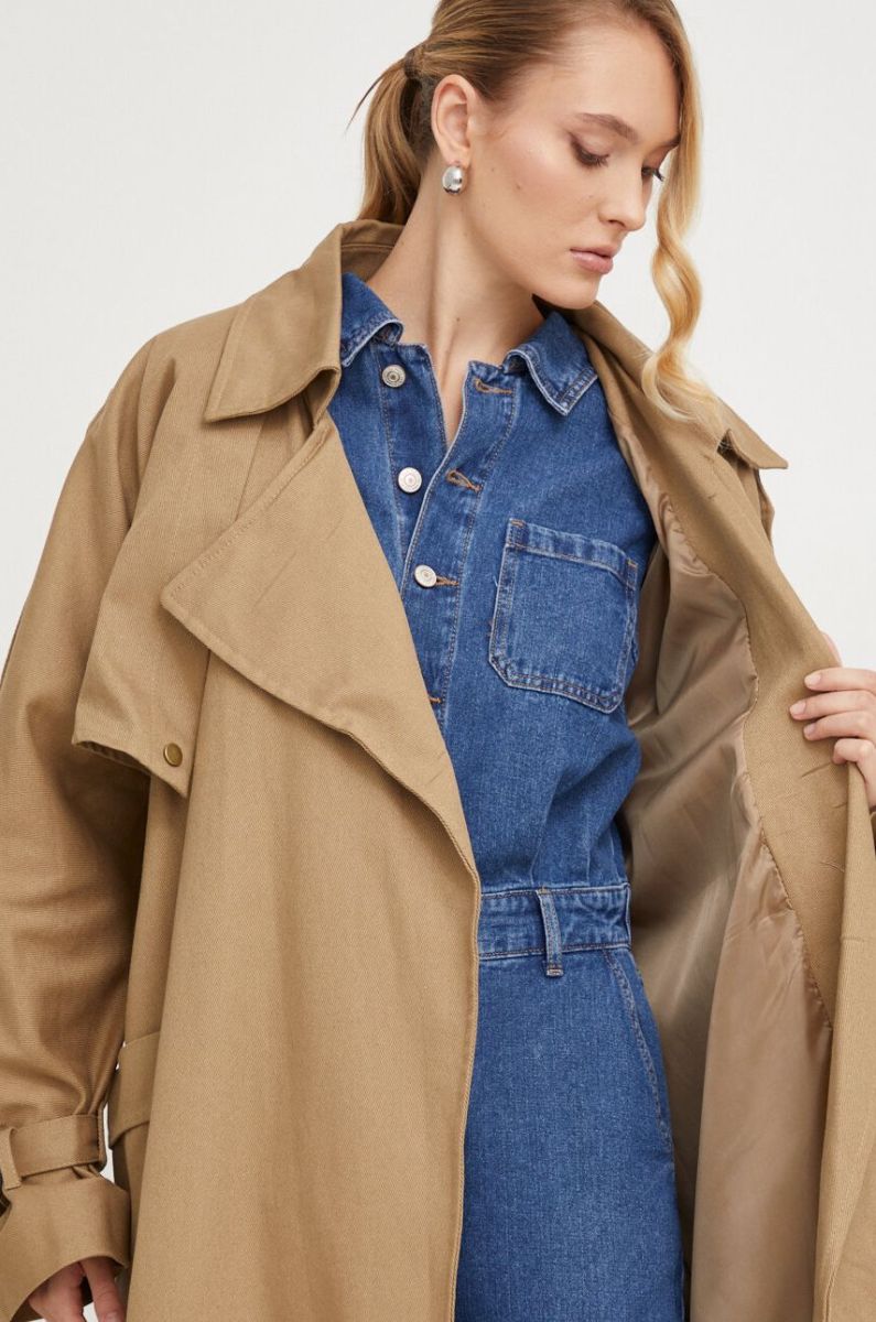 Пальто Answear Lab жіночий колір бежевий перехідний без застібки (3674577)