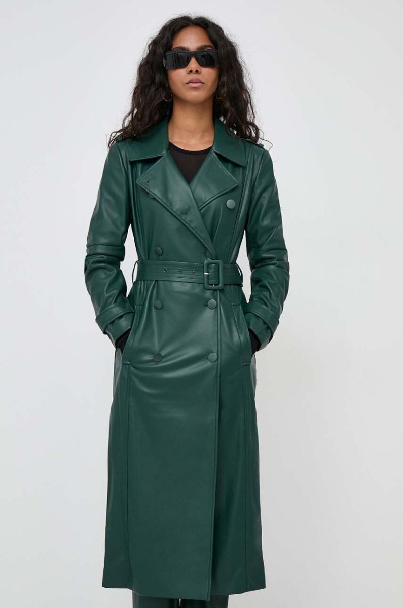 Пальто Marciano Guess жіночий колір зелений перехідний двобортний