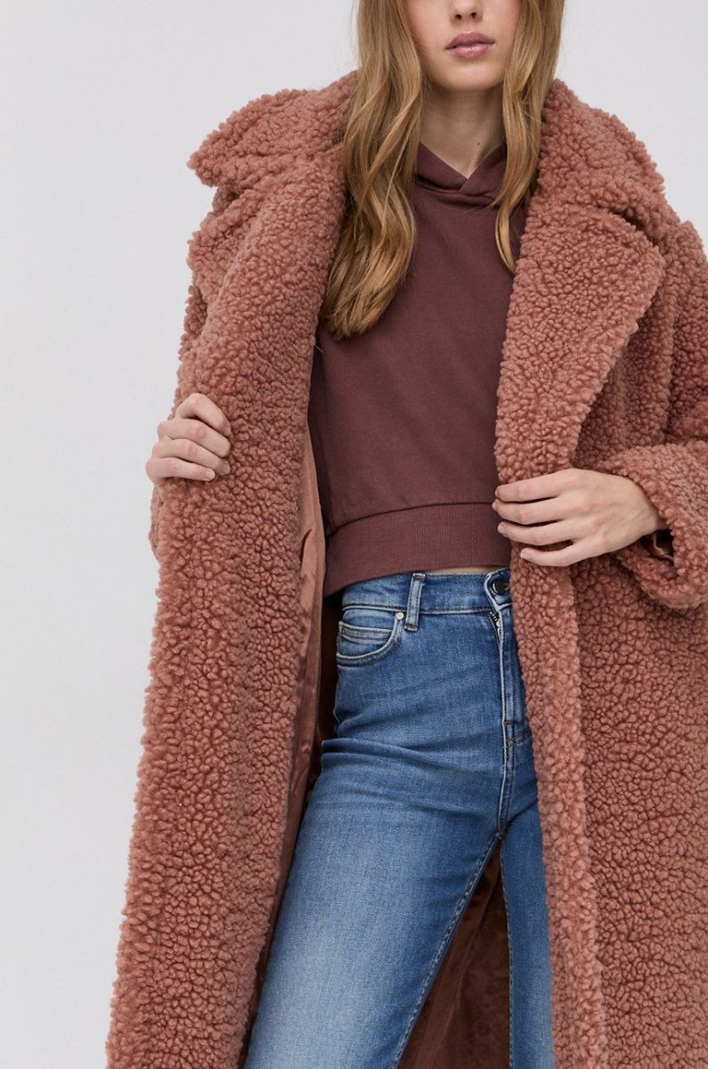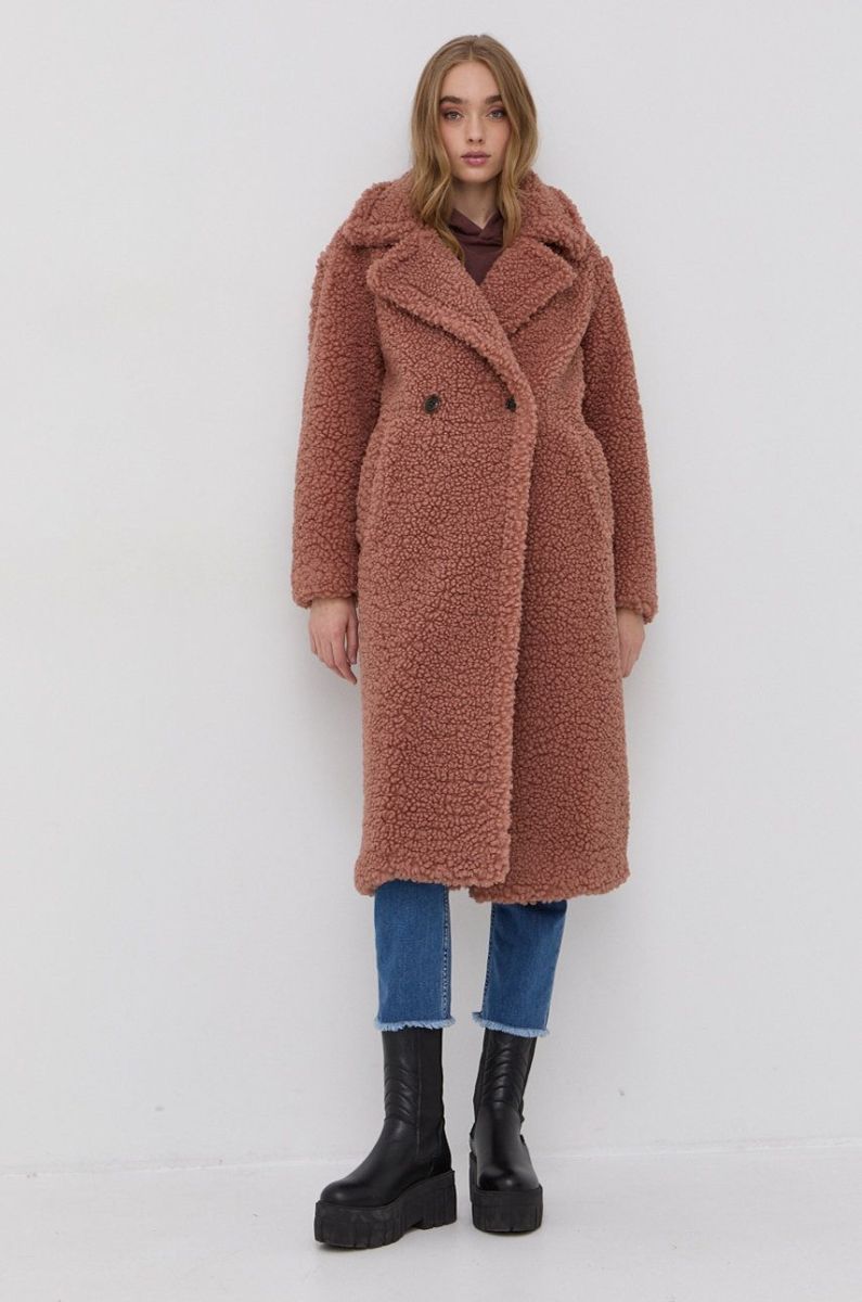 Пальто UGG жіноче колір рожевий перехідне двобортне