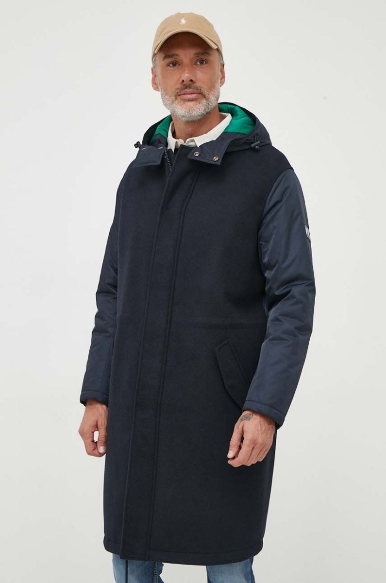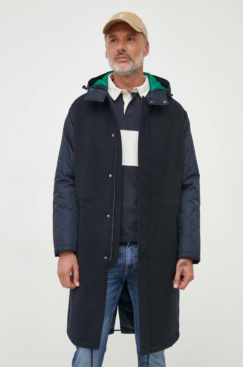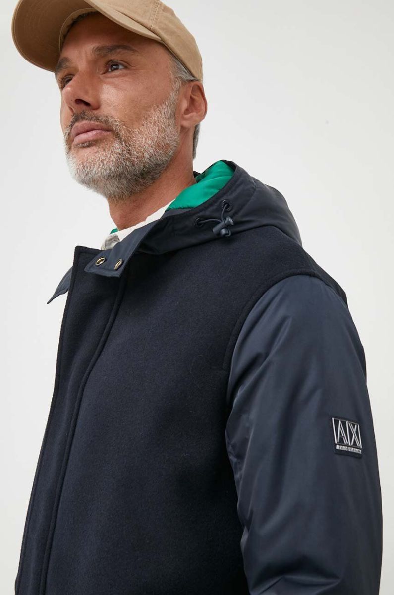 Пальто з домішкою вовни Armani Exchange колір синій перехідний