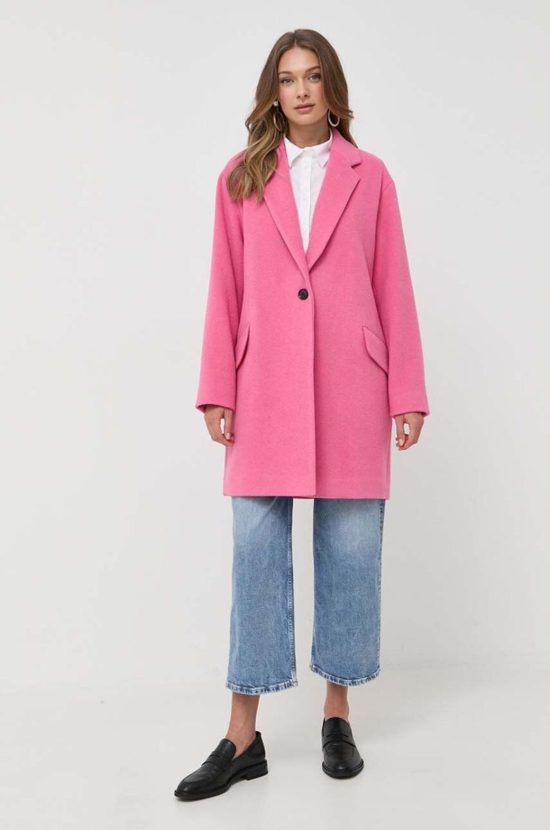 Пальто з домішкою вовни BOSS колір рожевий перехідний oversize
