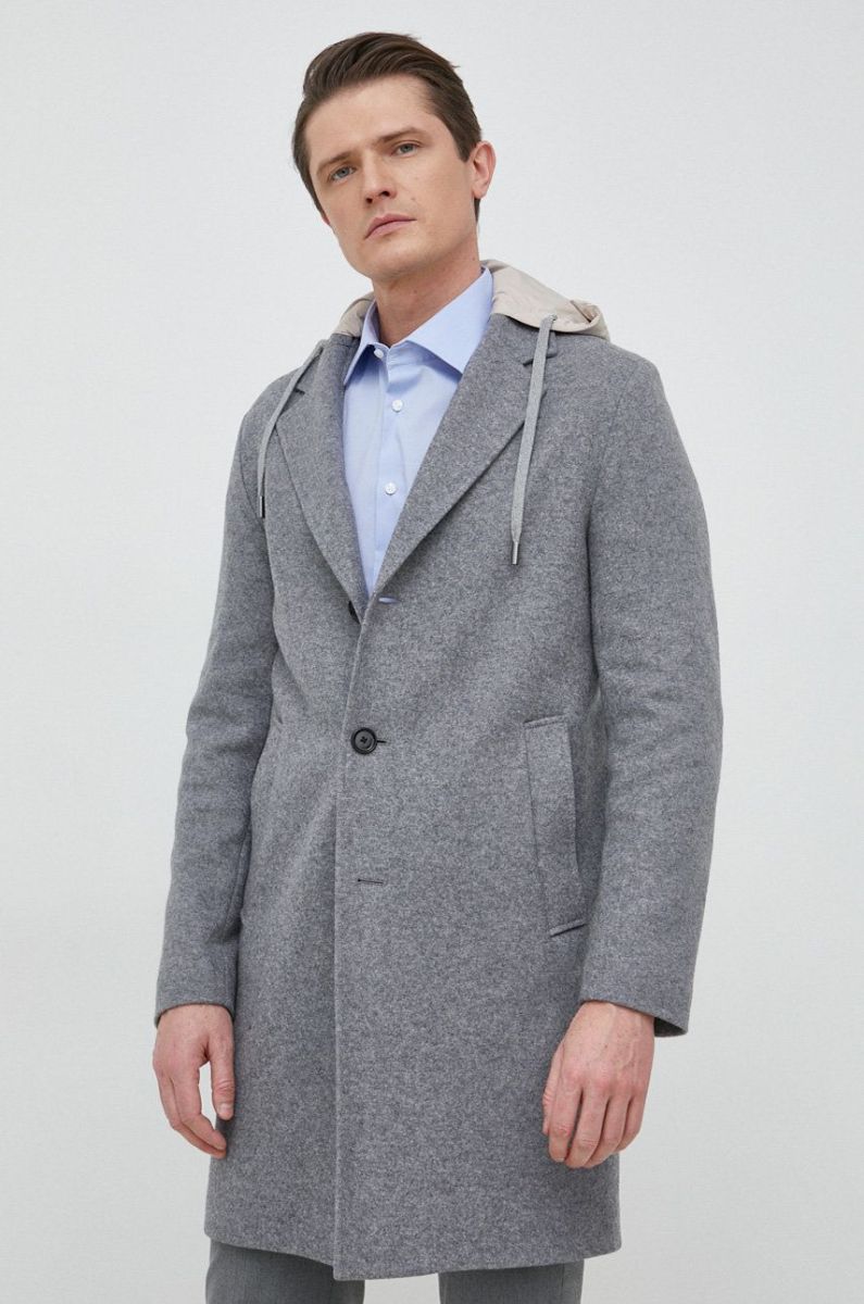Пальто з домішкою вовни BOSS колір сірий перехідний oversize