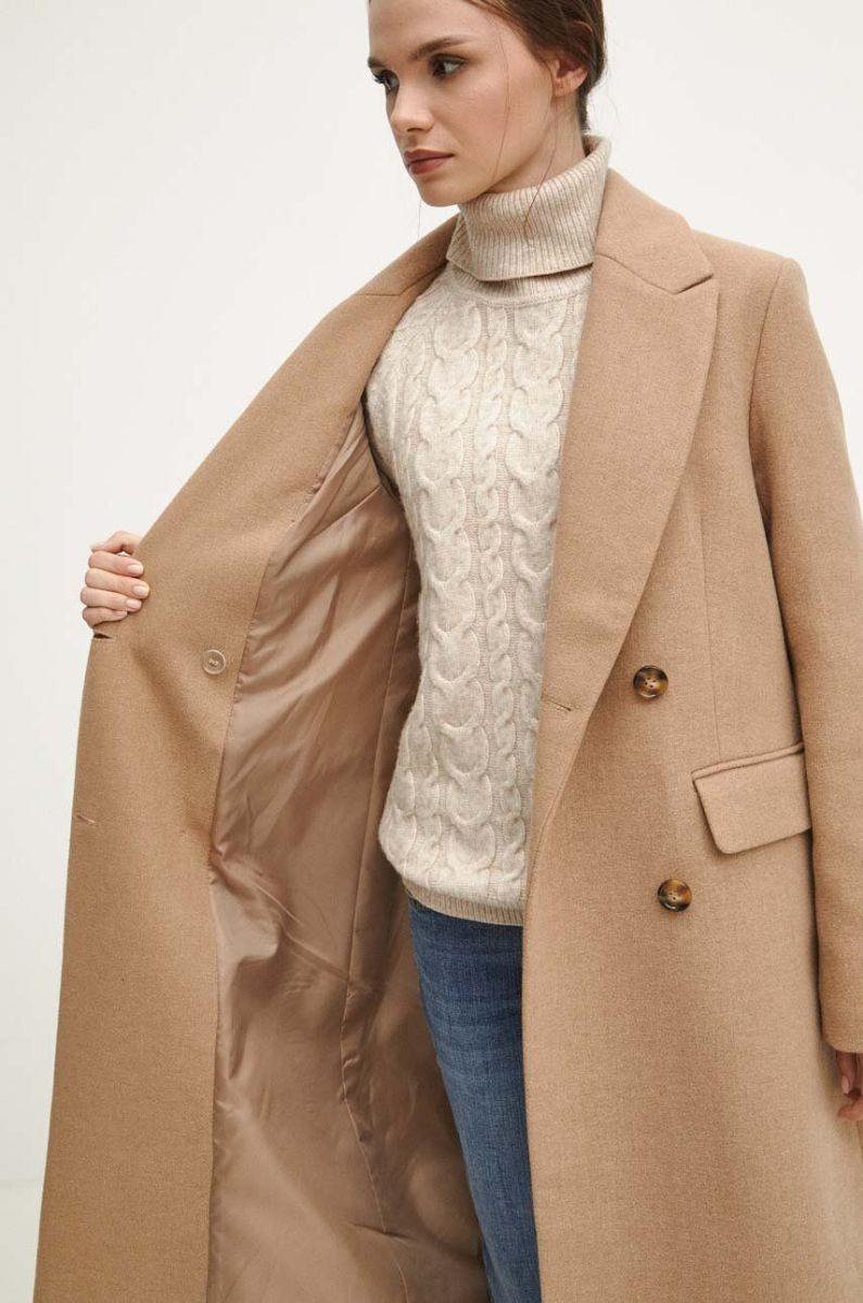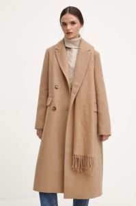 Пальто з домішкою вовни Medicine колір бежевий перехідний двобортний