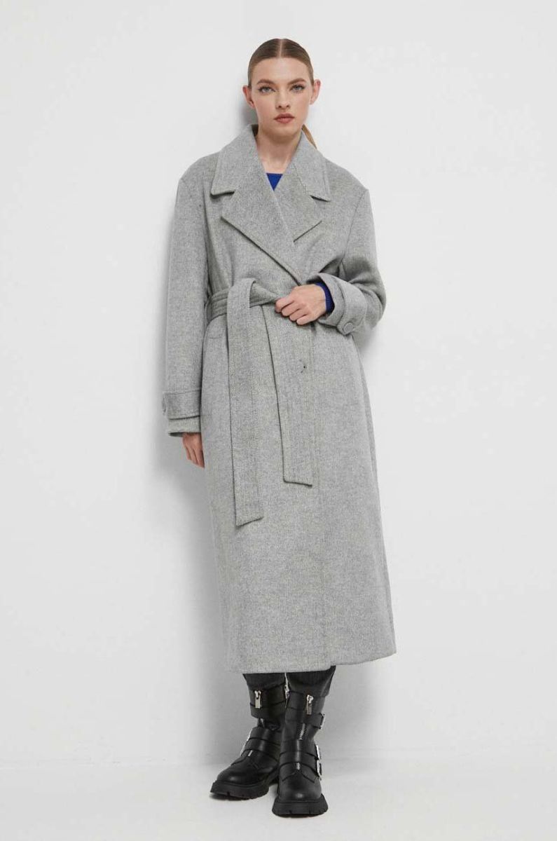 Пальто з домішкою вовни Medicine колір сірий перехідний двобортний (3589435)