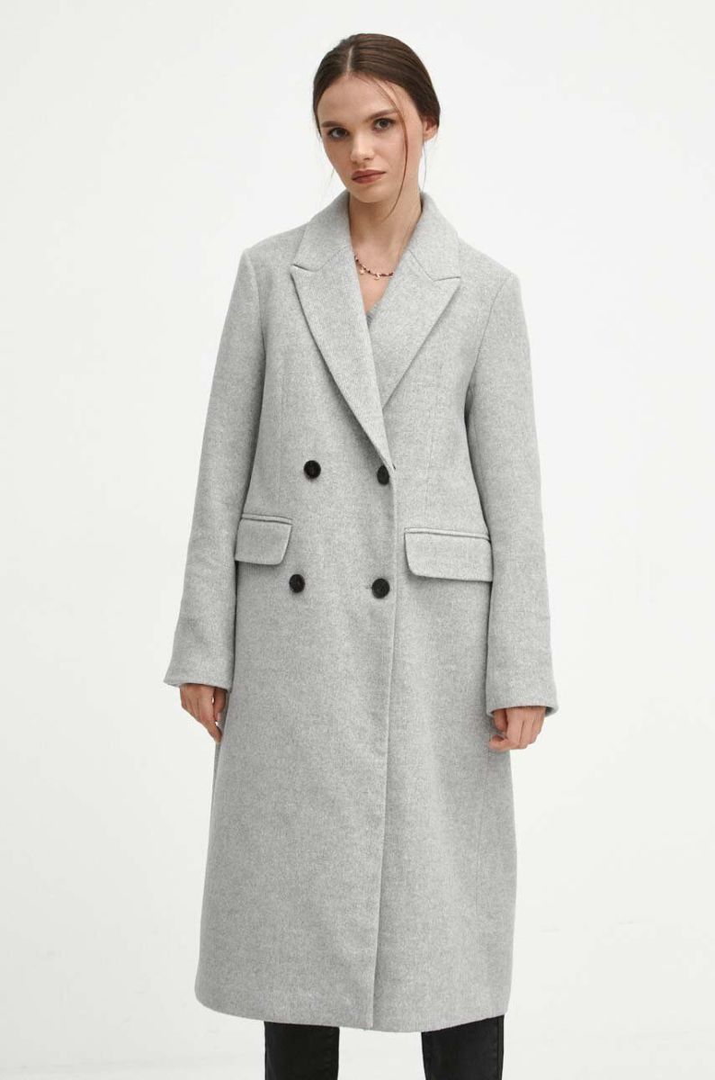 Пальто з домішкою вовни Medicine колір сірий перехідний двобортний (3628579)