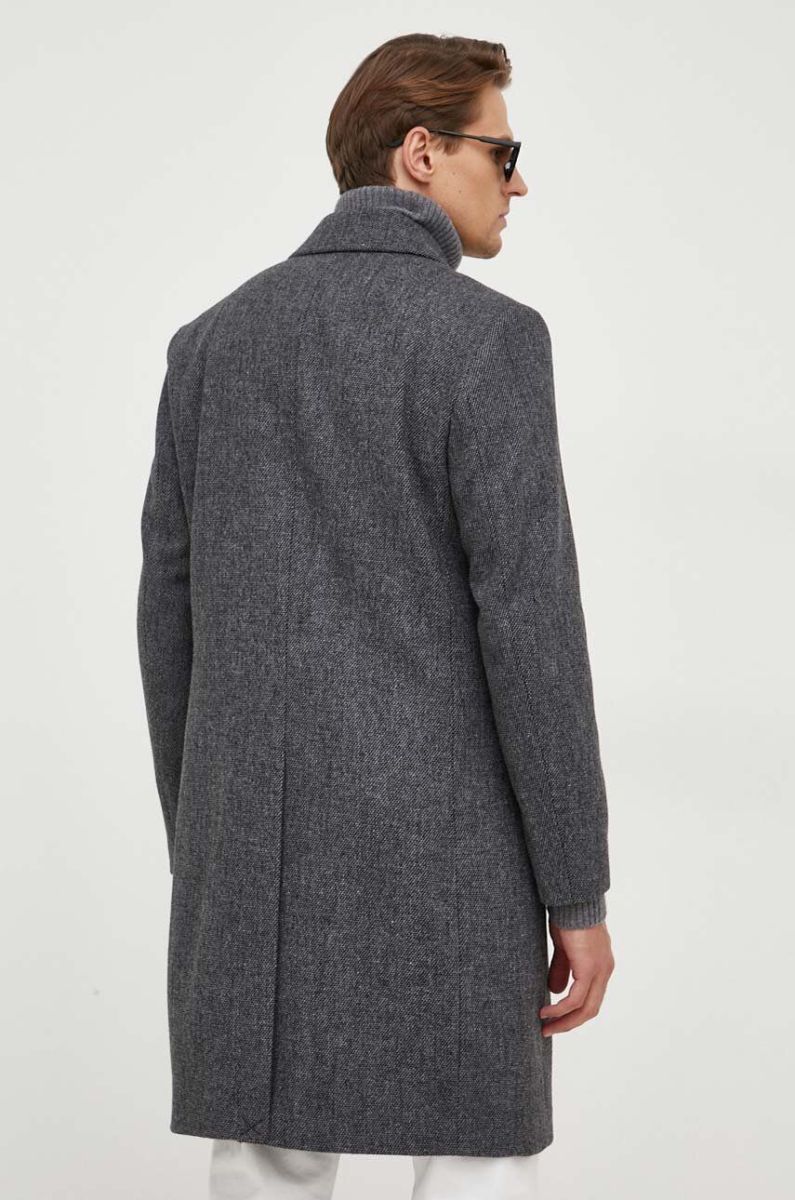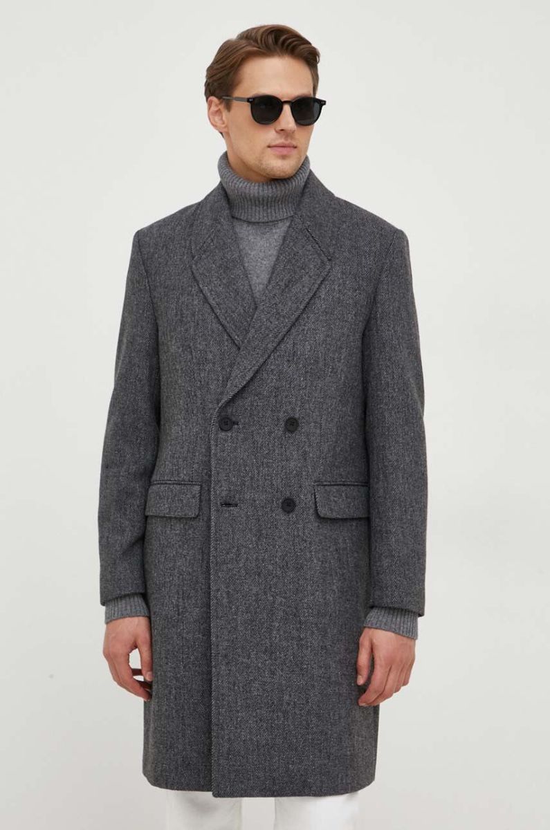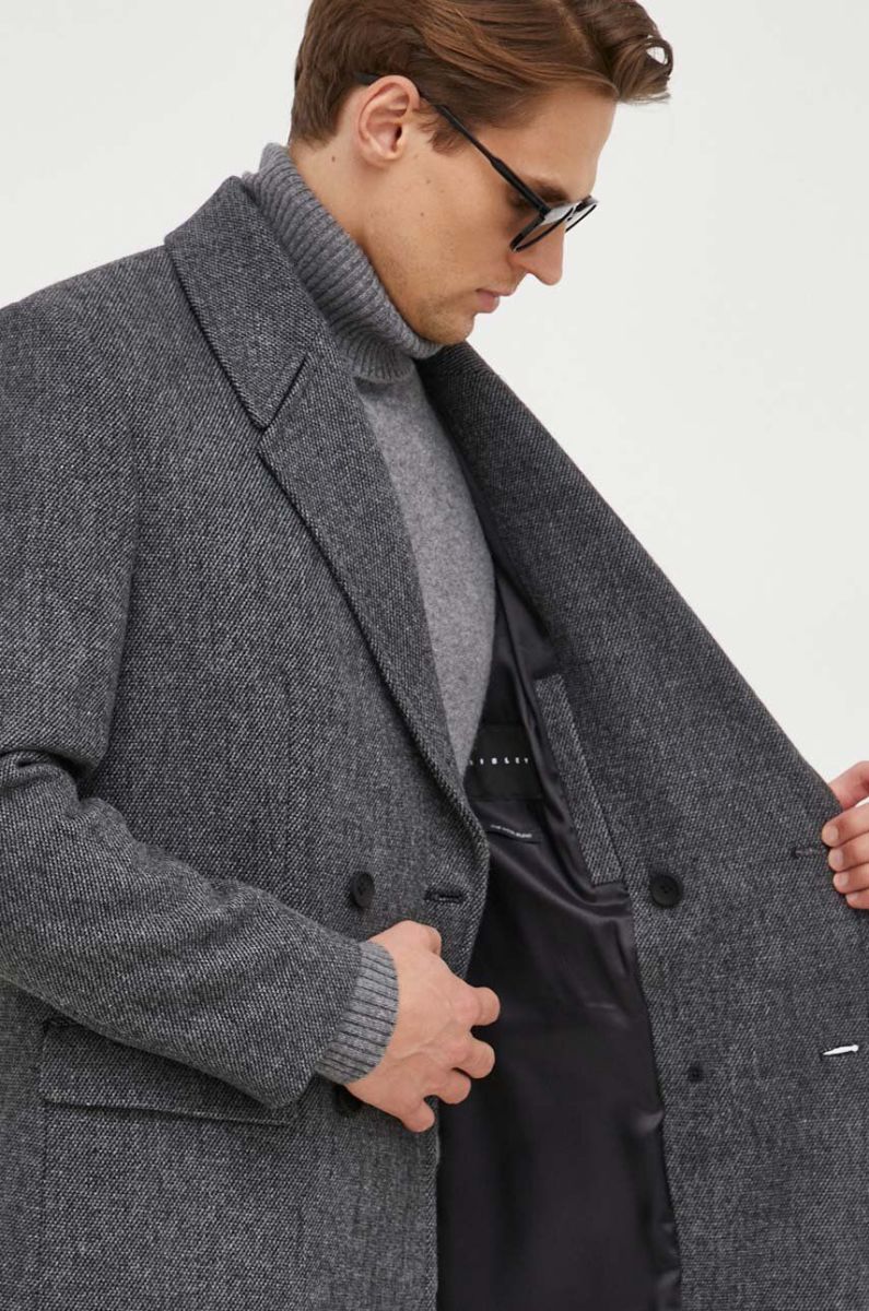 Пальто з домішкою вовни Sisley колір сірий перехідний двобортний