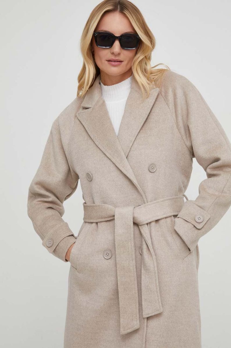 Пальто з вовною Answear Lab колір бежевий перехідний двобортний (3569069)